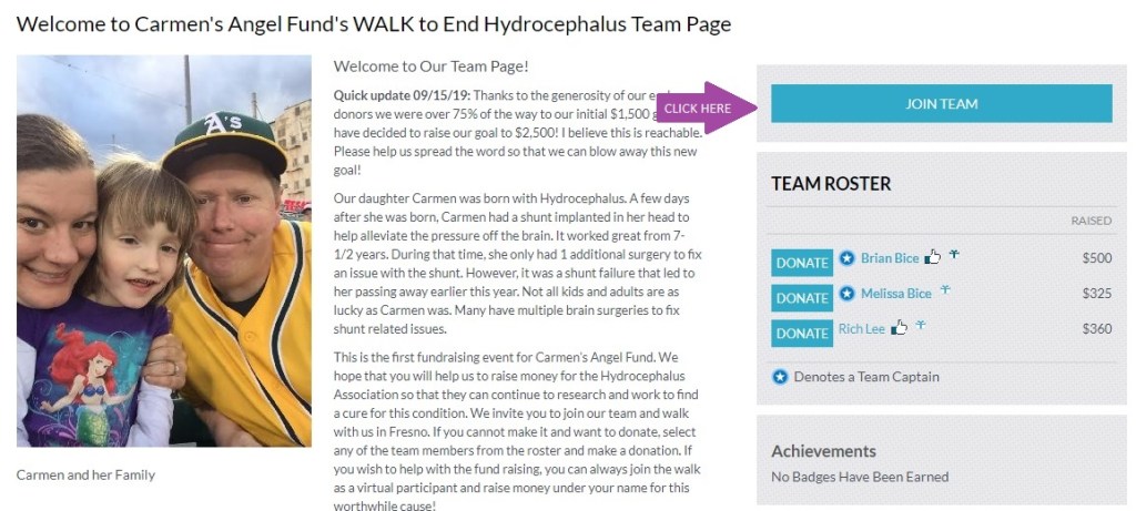 Ultimately, the mission here is to create awareness and have fun! It would be awesome if we could gather a large team of family and friends as a show of support for Carmen and those who are affected by hydrocephalus.