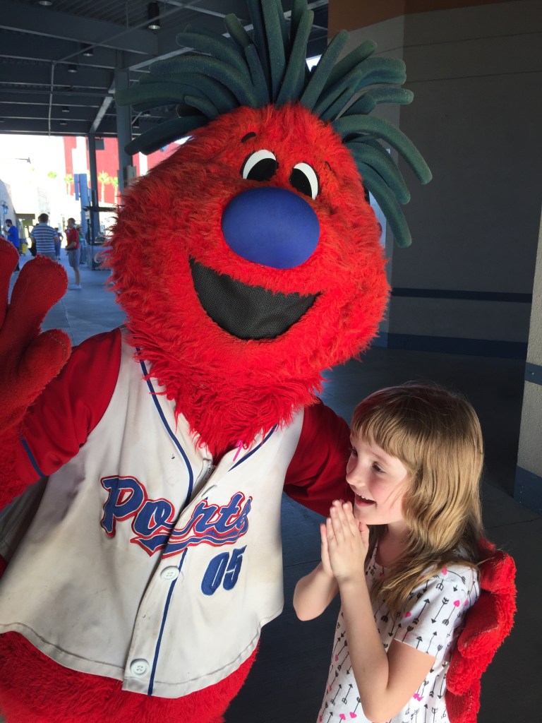 Some kids runaway from mascots because they are afraid of them. Not Carmen. Every time we would go to the Stockton Ports game, or any other game for that fact, she would run to the mascot, especially Splash. Splash was one of here best friends. They had a routine they would do and anyone who saw the pure joy and love on Carmen’s face at that time, couldn’t help but smile. Carmen loves her Splashie-Fur-Face.